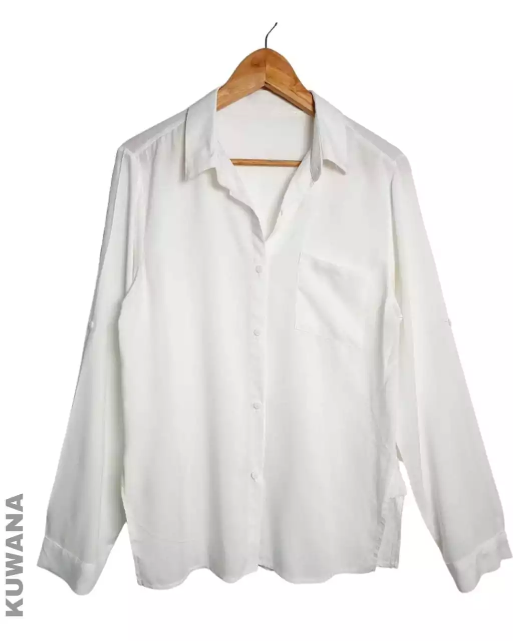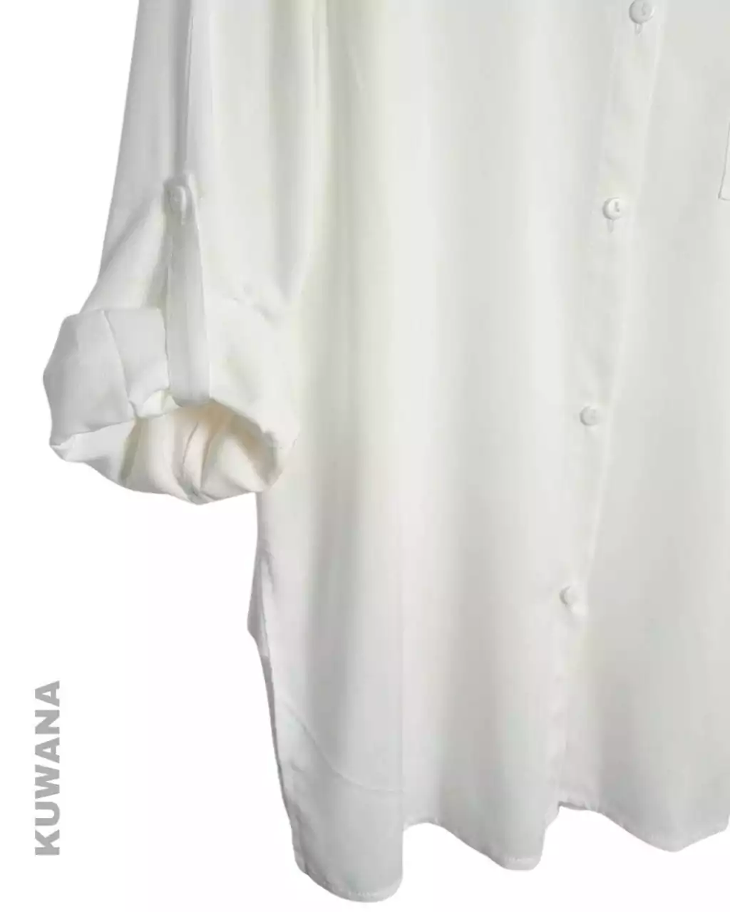 Corte Clasico, Oversized, con un Bolsillo al frente, manga larga con presillas para arremangarla!
