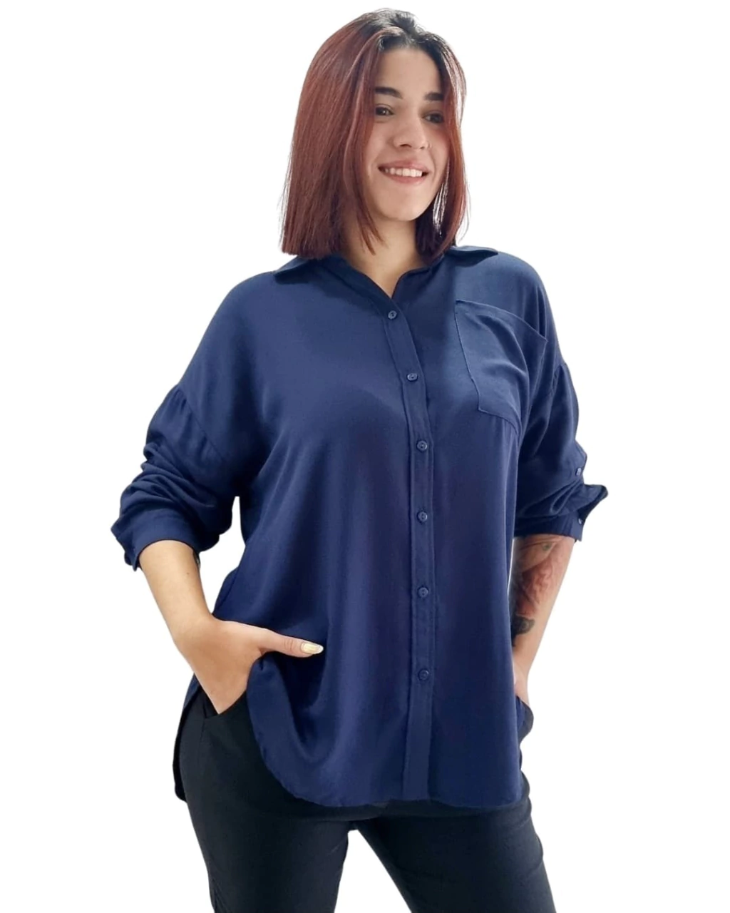 Corte Clasico, Oversized, con un Bolsillo al frente, manga larga con presillas para arremangarla!
