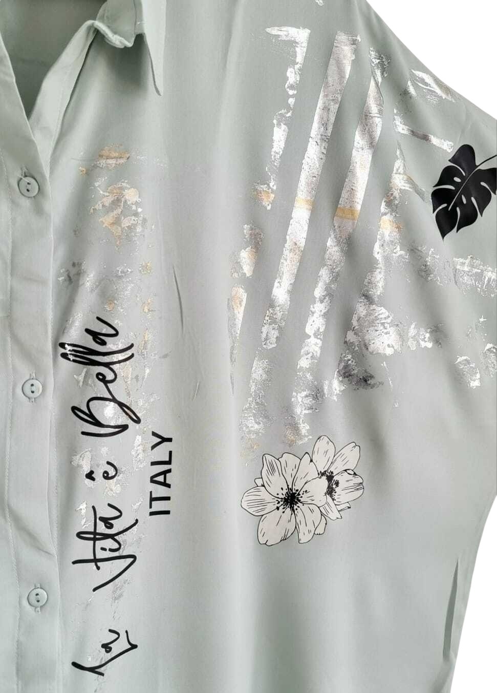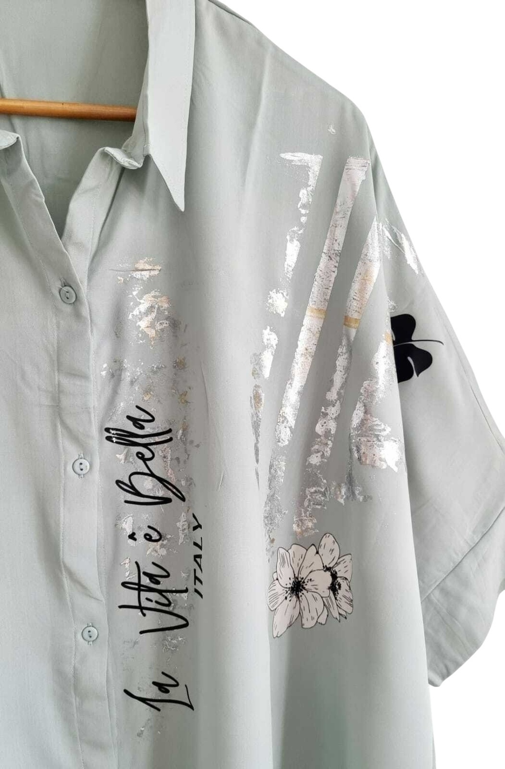 Maxi Camisa Oversize XXL Manga 3/4 con detalles realizados en Foil Artesanal + estampa