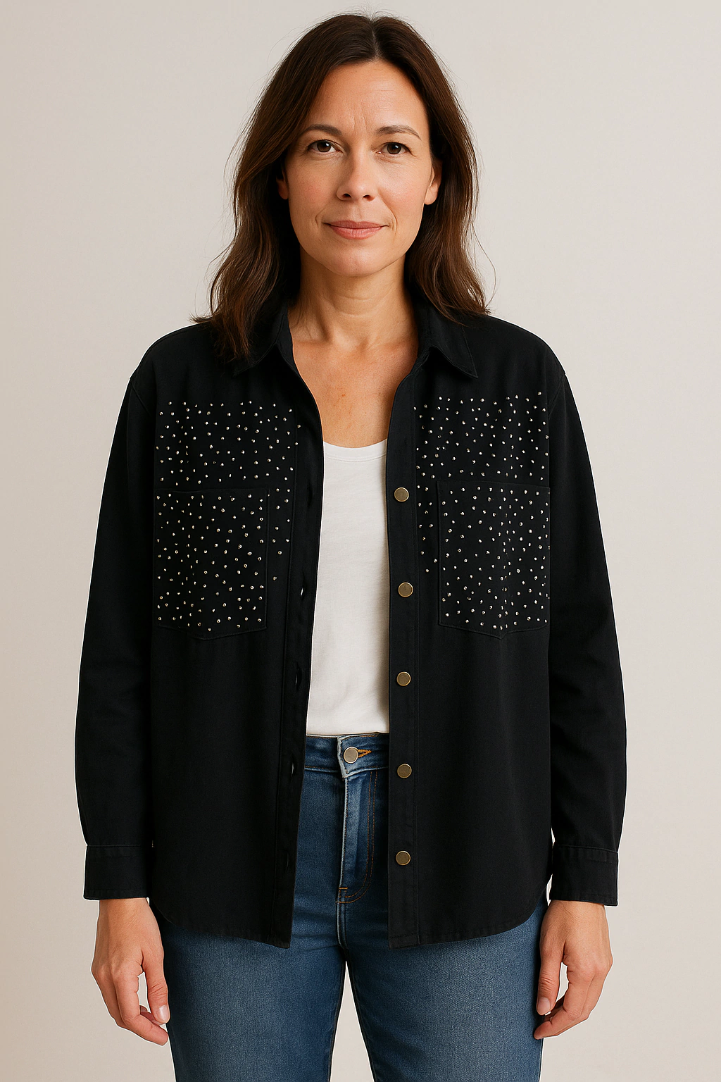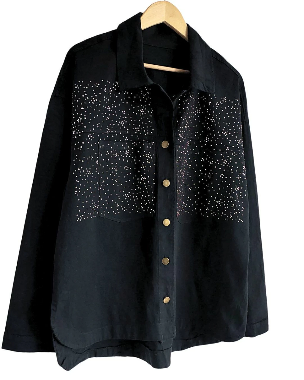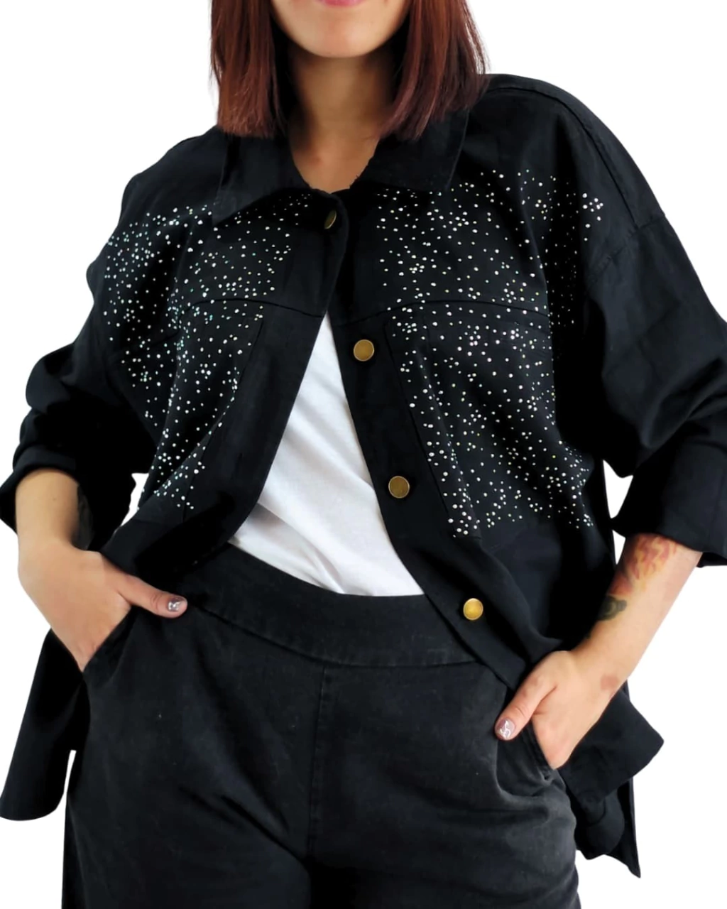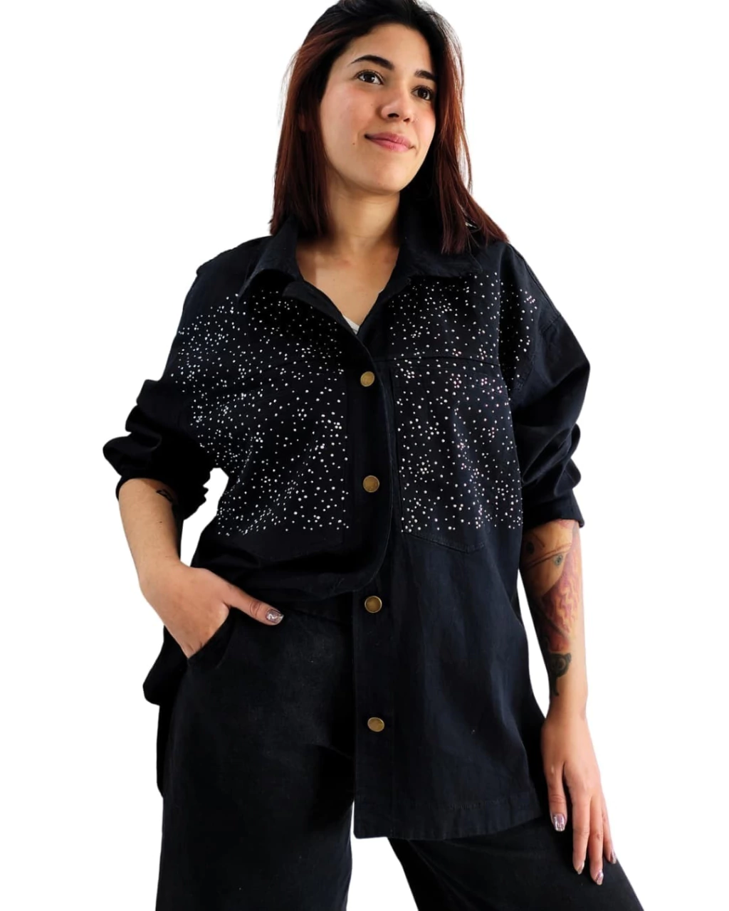 Camisaco denim de corte OVERSIZED , esta confeccionado en gabardina liviano y suave.