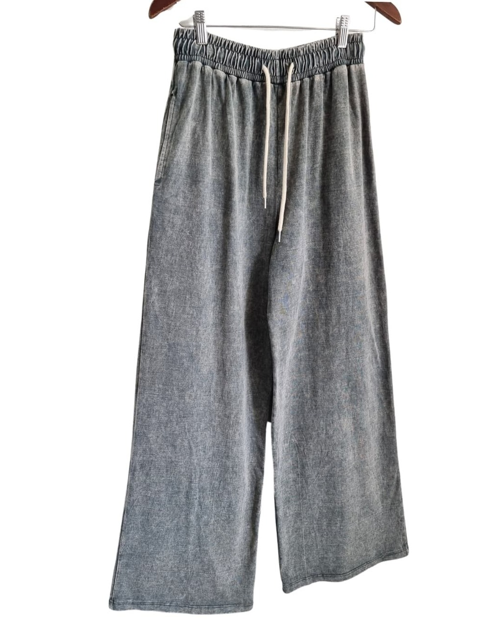 Pantalón de estilo JOGGER CORTE PALAZZO MUY AMPLIO, con cintura elástica y cordón ajustable. Posee bolsillos laterales.