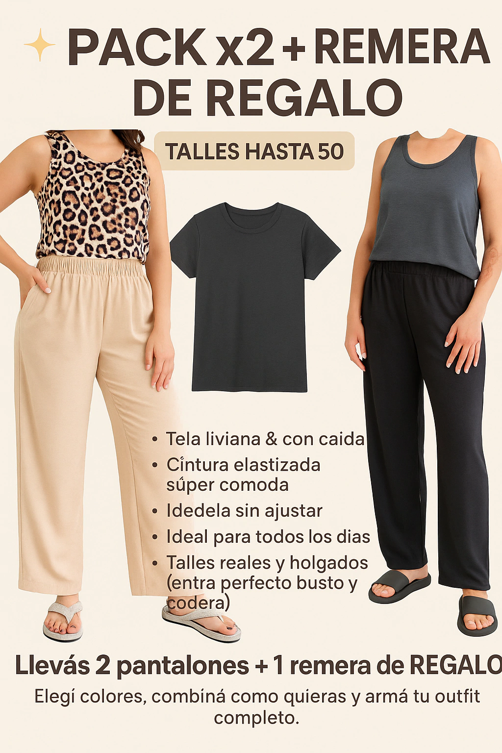 PACK 2 Pantalon PALAZZO confeccionado en Cey. Excelente caida, cintura elastizada