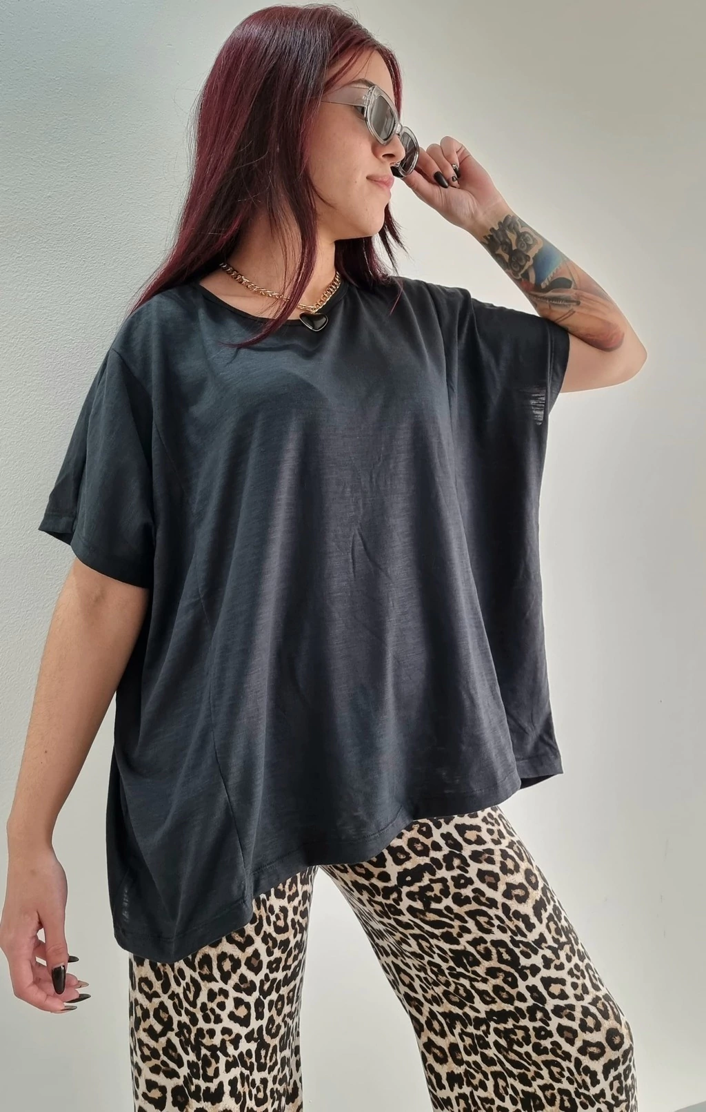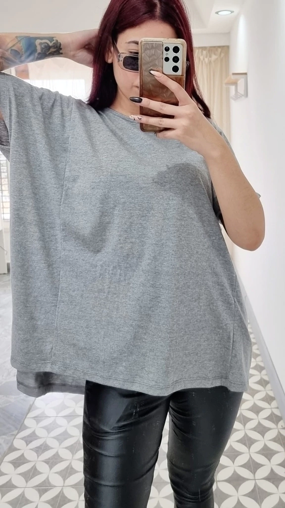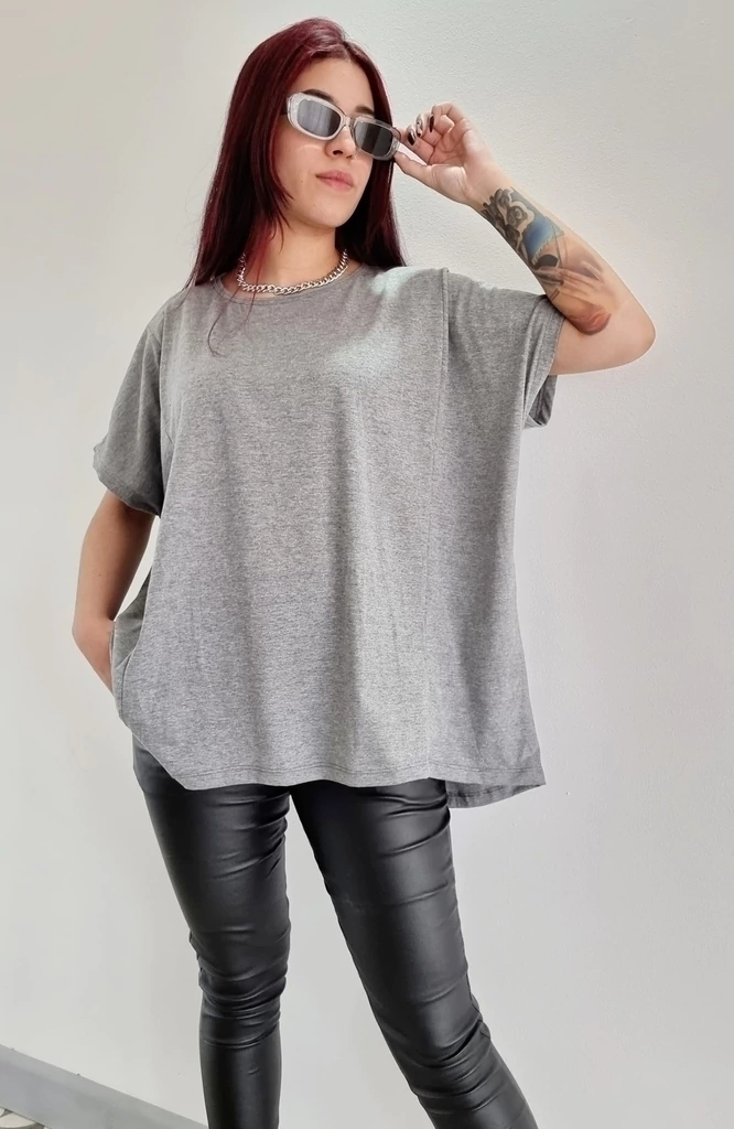 Remerón Oversized confeccionado en algodòn PREMIUM, escote redondo. Mas corto delante, mas largo detras