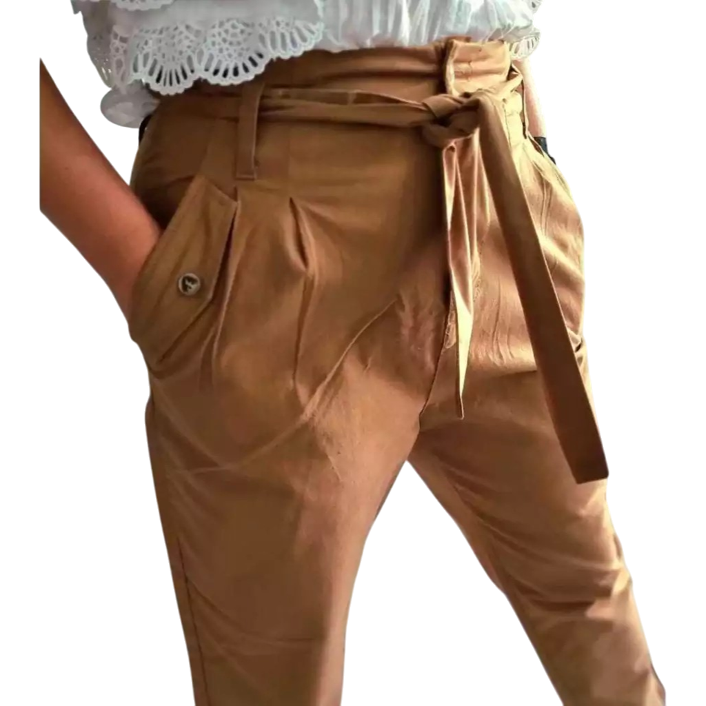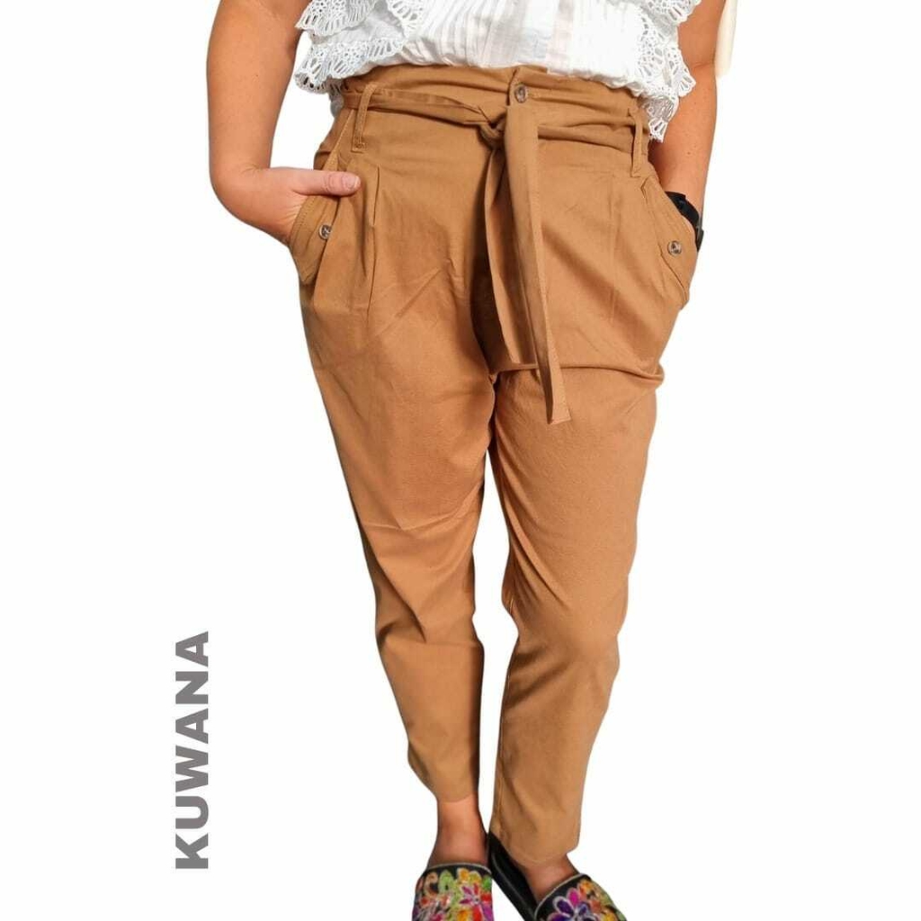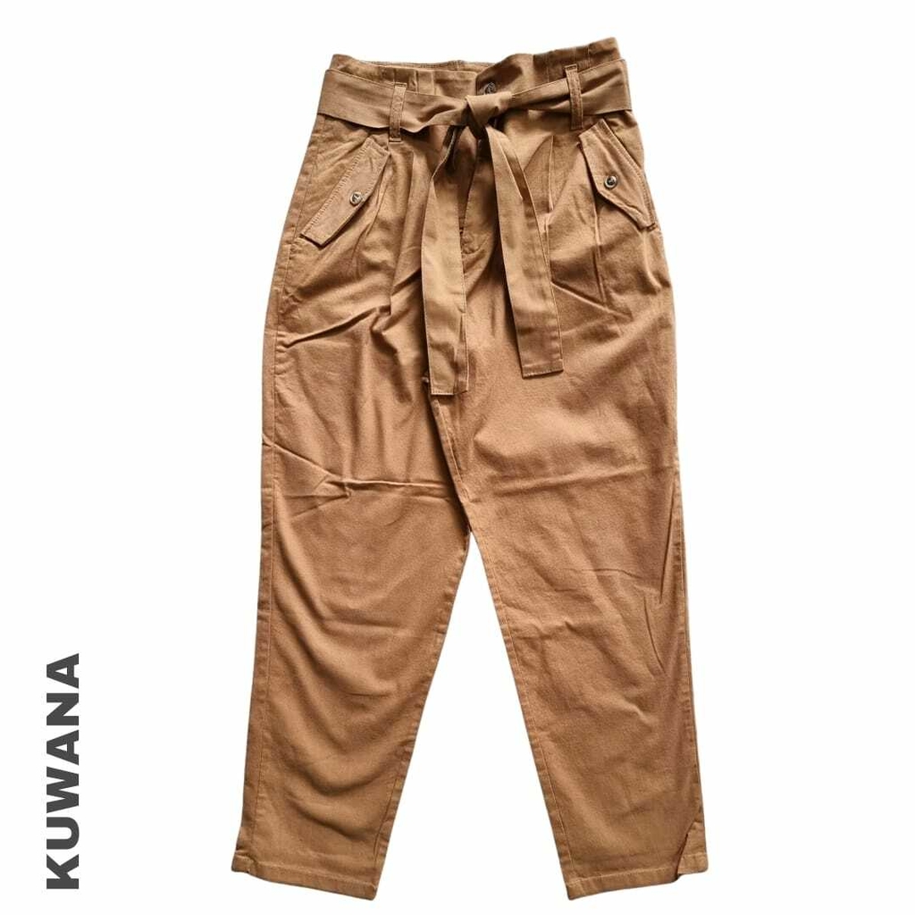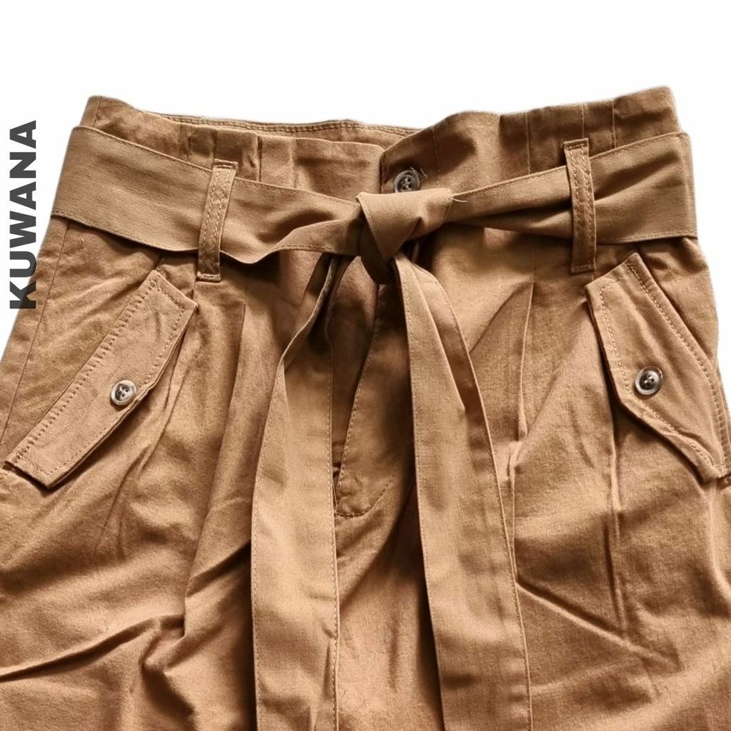 Posee boton ,cierre en delantero. Lazo de ajuste en mismo genero.