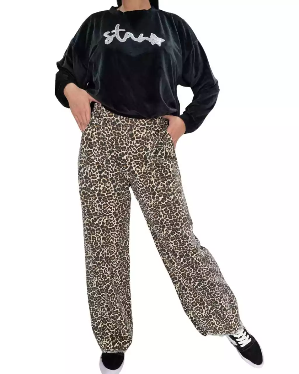 Pantalon corte WIDE LEG, RECTO confeccionado en GABARDINA RIGIDA prelavada