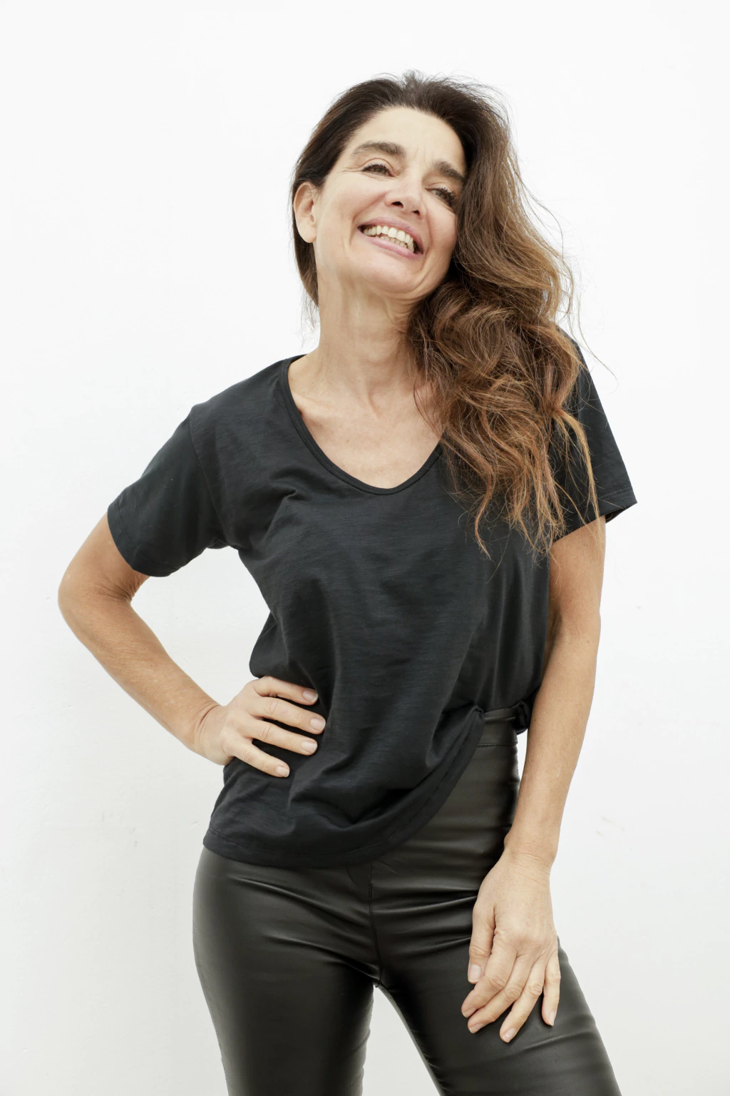 Remera Manga Corta, Escote V confeccionada en Algodon Premium FLAME tramado