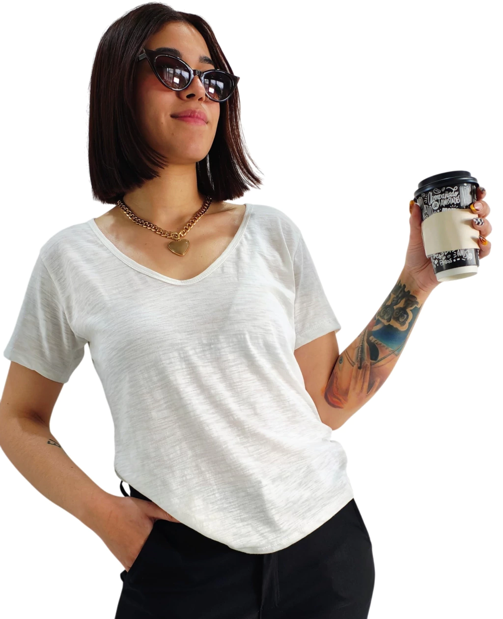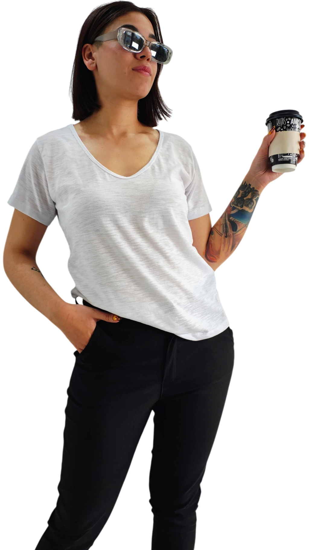 Remera Manga Corta, Escote V confeccionada en Algodon Premium FLAME tramado