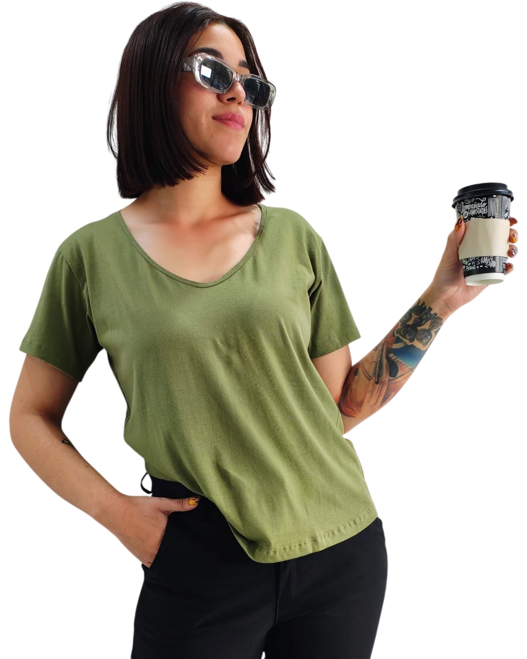 Remera Manga Corta, Escote V confeccionada en Algodon Premium