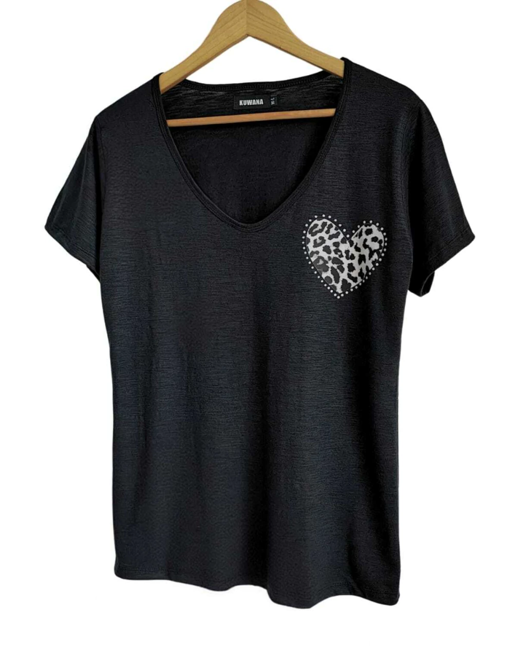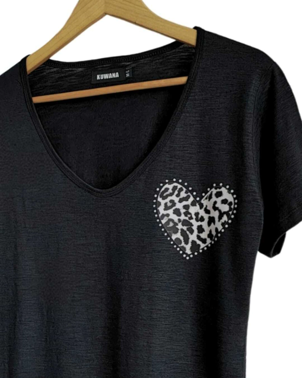 Remera Manga Corta, Escote V confeccionada en Algodon Premium FLAME TRAMADO