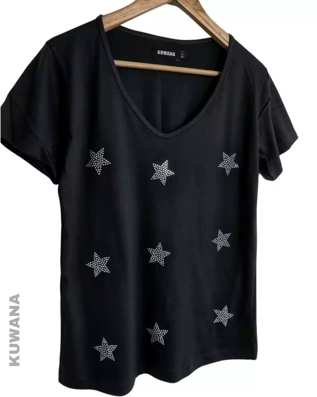 Remera Manga Corta, Escote V confeccionada en Algodon Premium FLAMEE TRAMADO