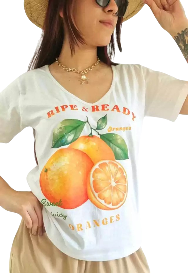 Remera Manga Corta, Escote V confeccionada en Algodon con estampa en frente