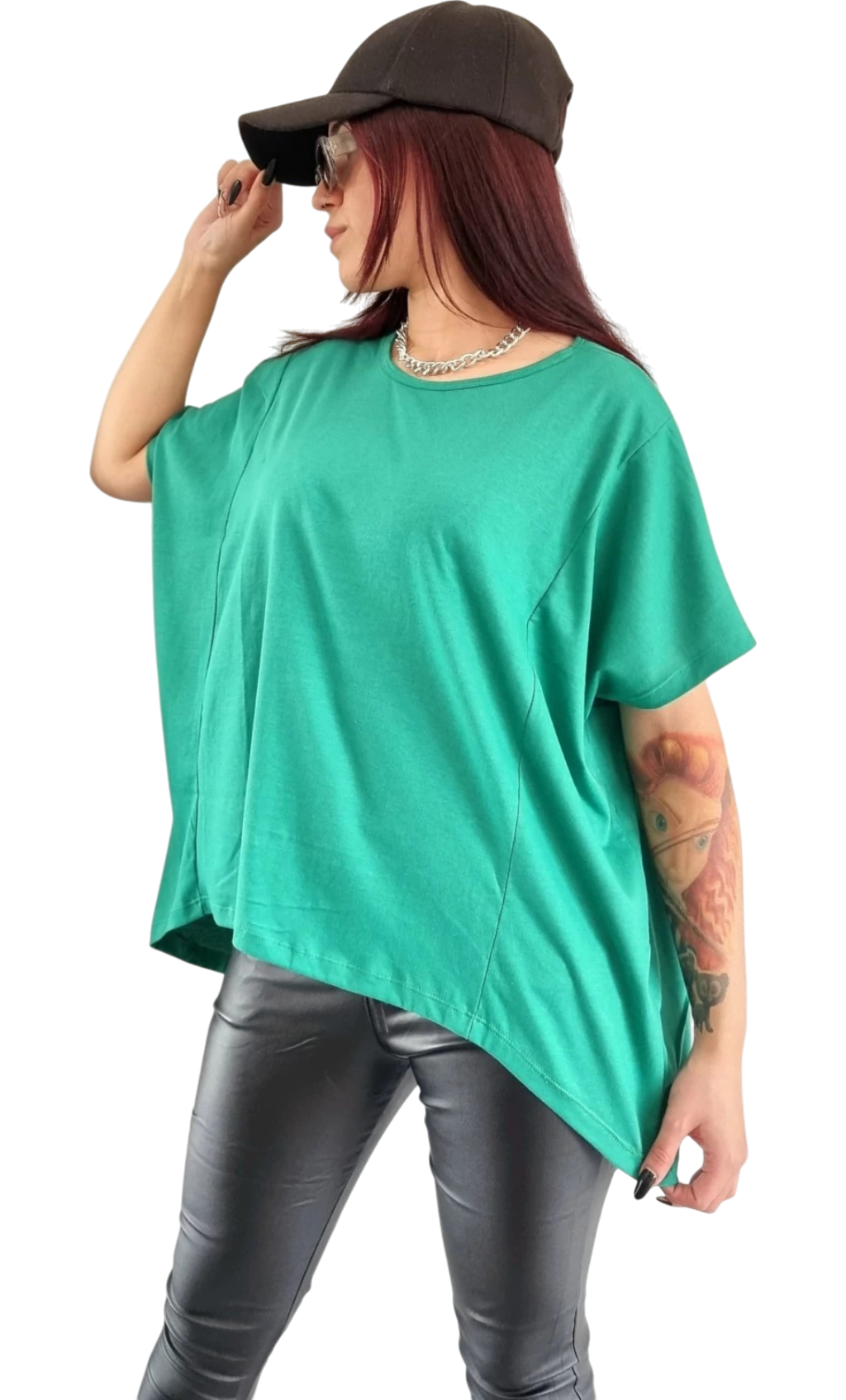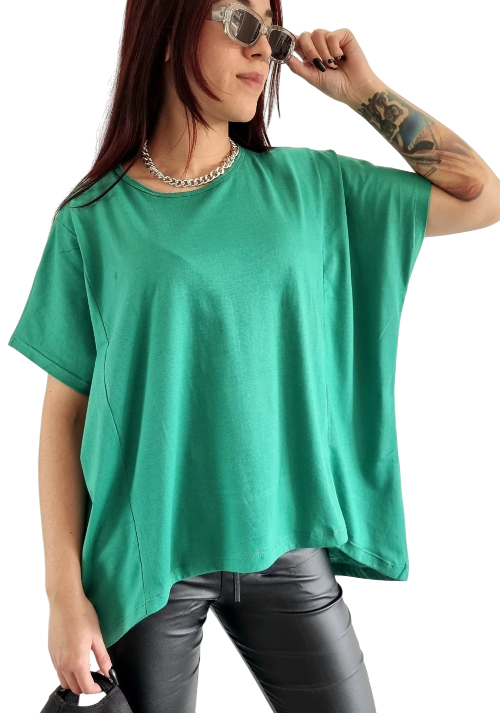 Remerón Oversized confeccionado en algodòn PREMIUM, escote redondo. Mas corto delante, mas largo detras