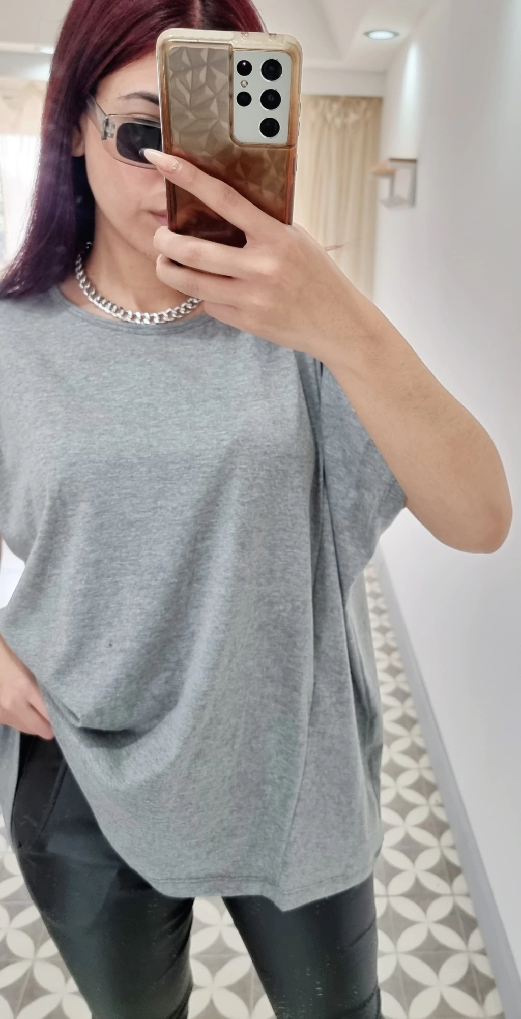 Remerón Oversized confeccionado en algodòn flamee, escote redondo. Mas corto delante, mas largo detras