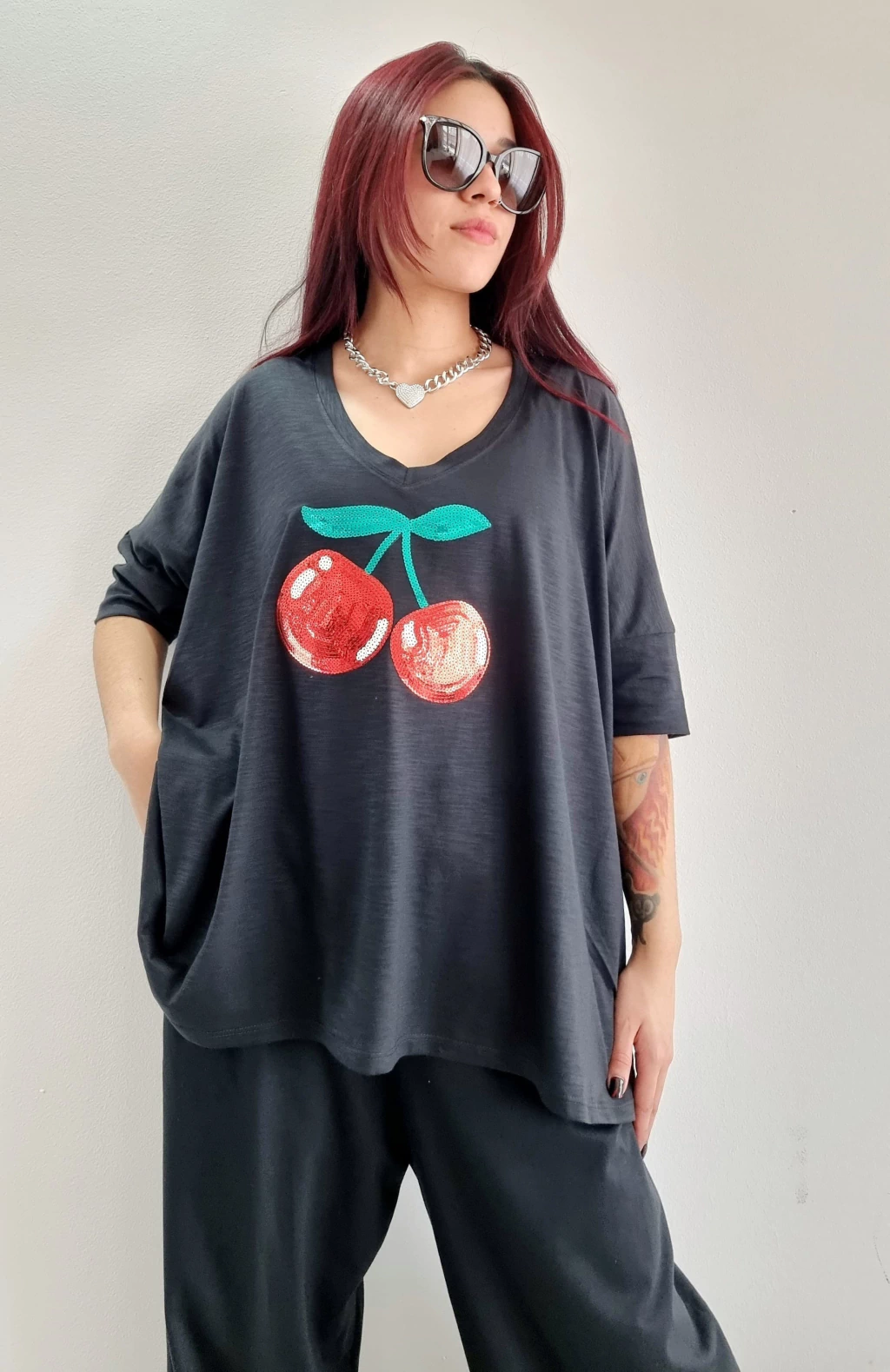 Escote V - Mangas caidas con puño tipo 3/4
