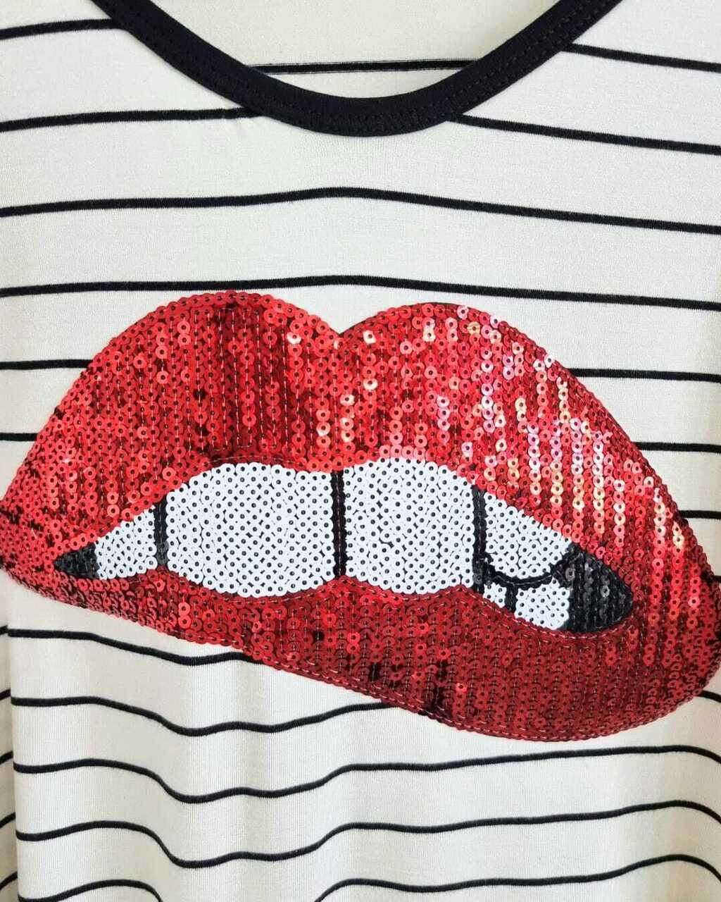 ?Remerón Oversized confeccionado en Modal Viscosa con lycra . Con aplique de lentejuelas en forma de boca.