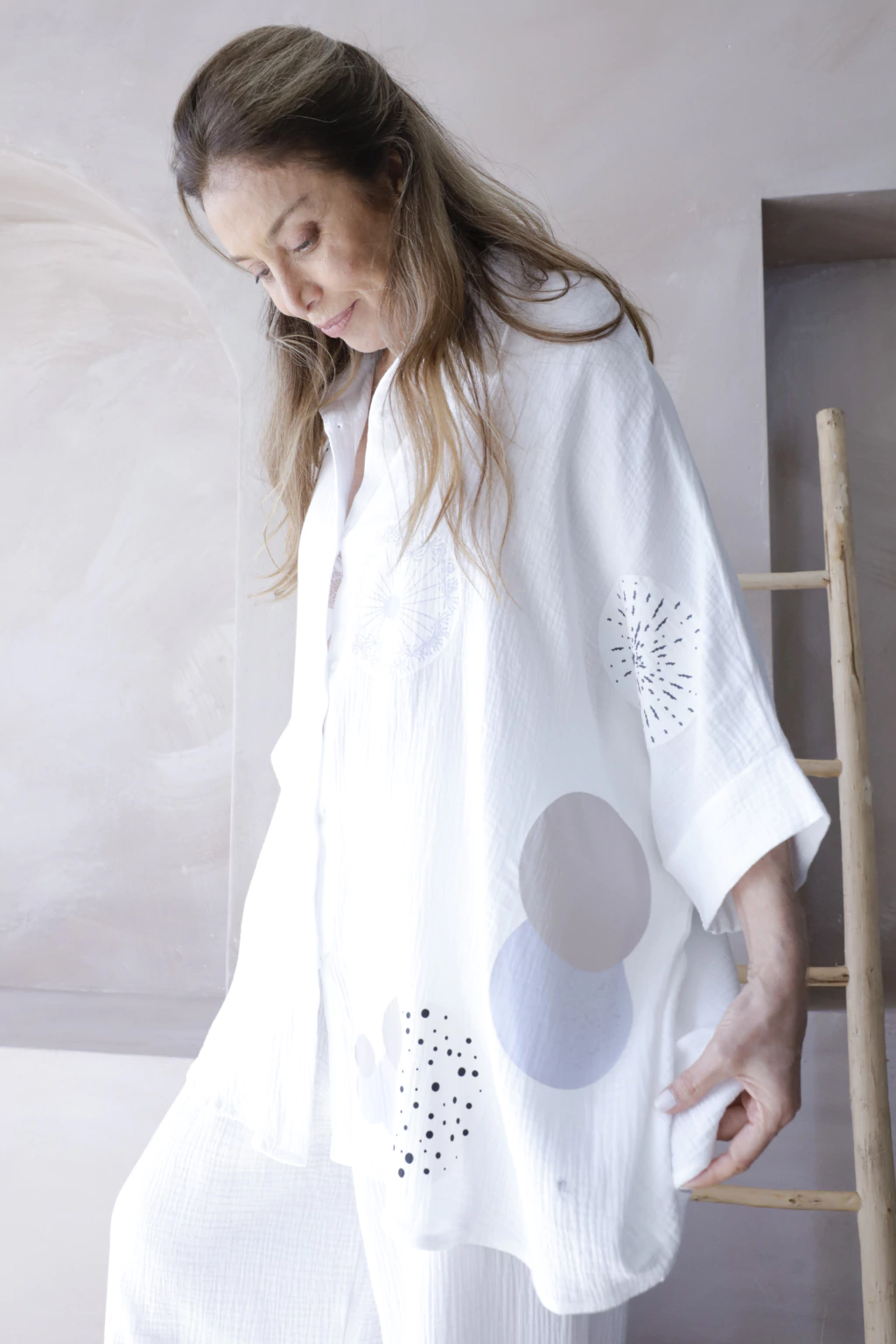 Maxi Camisa Oversize XXL Manga 3/4, diseño exclusivo FULL ESTAMPA EN FRENTE Y ESPALDA