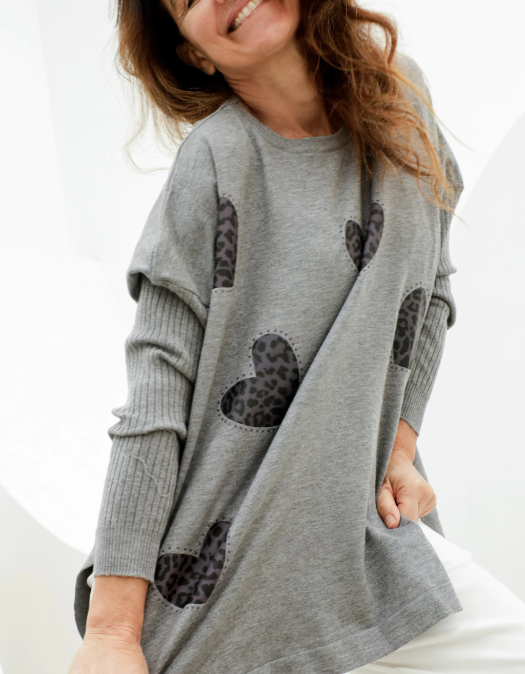 Estampado al frente CORAZONES PRINT GRIS ALILADO