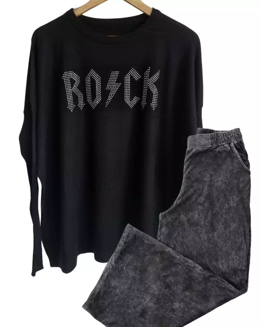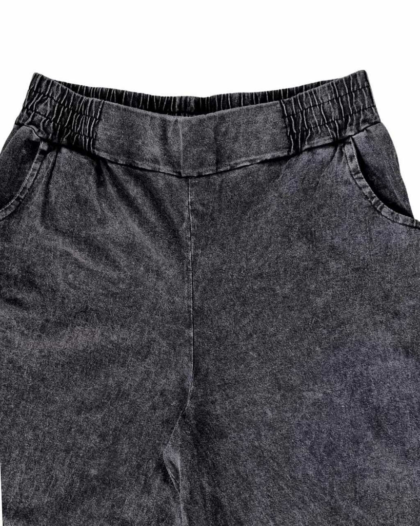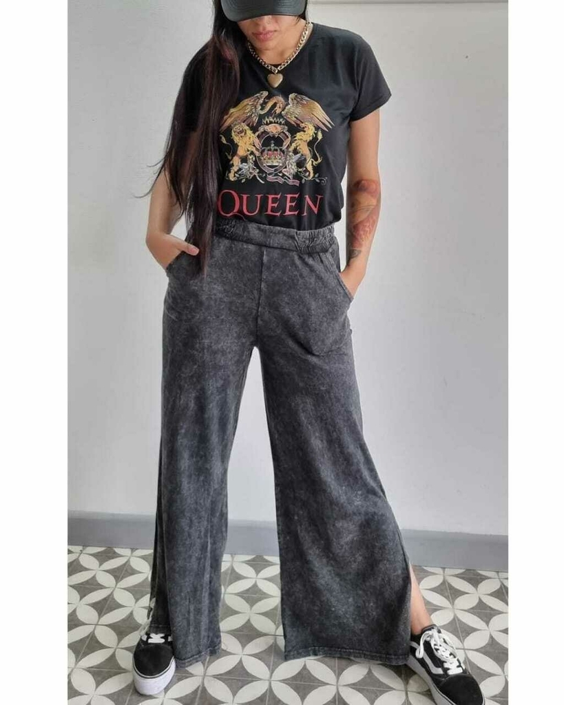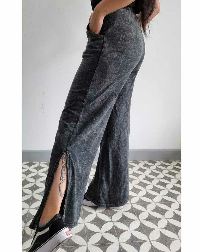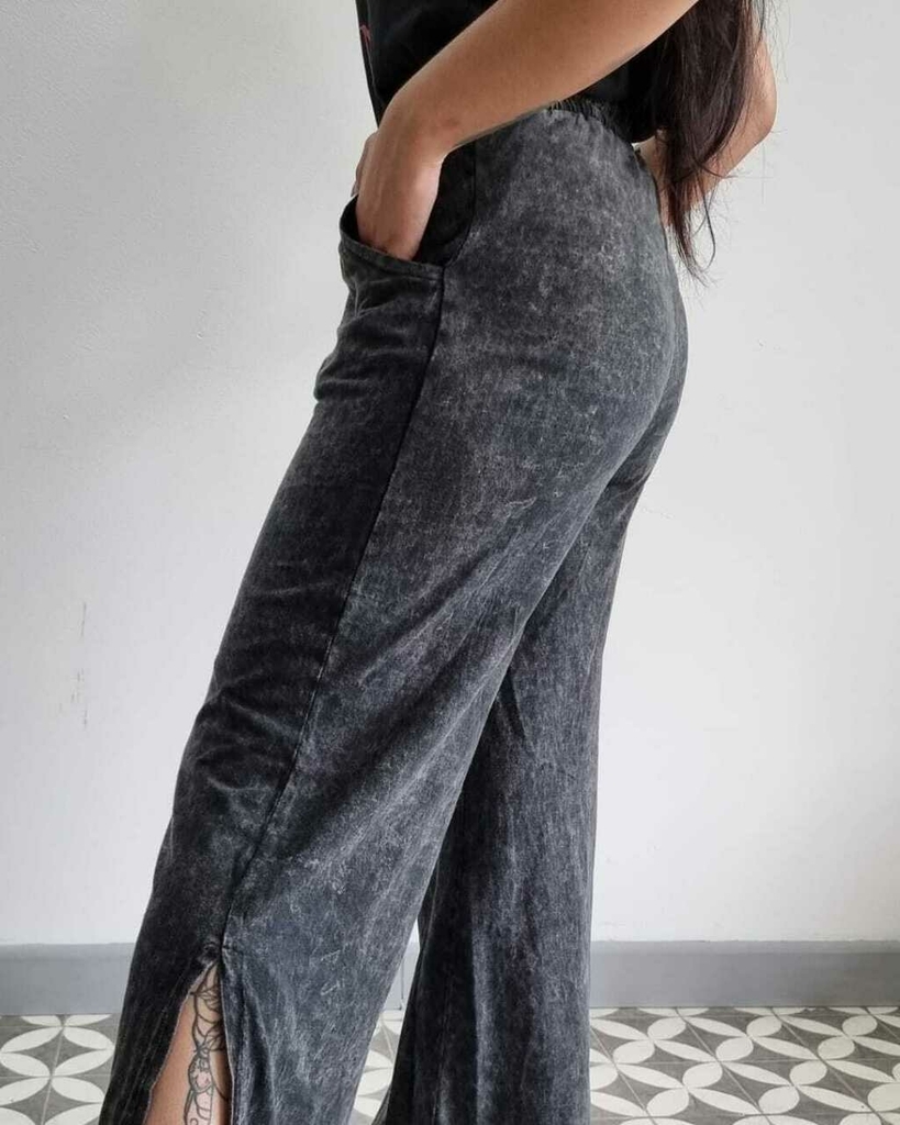 Palazzo confeccionado en jersey 100 % ALGODON , con proceso de lavado de efecto desgastado.