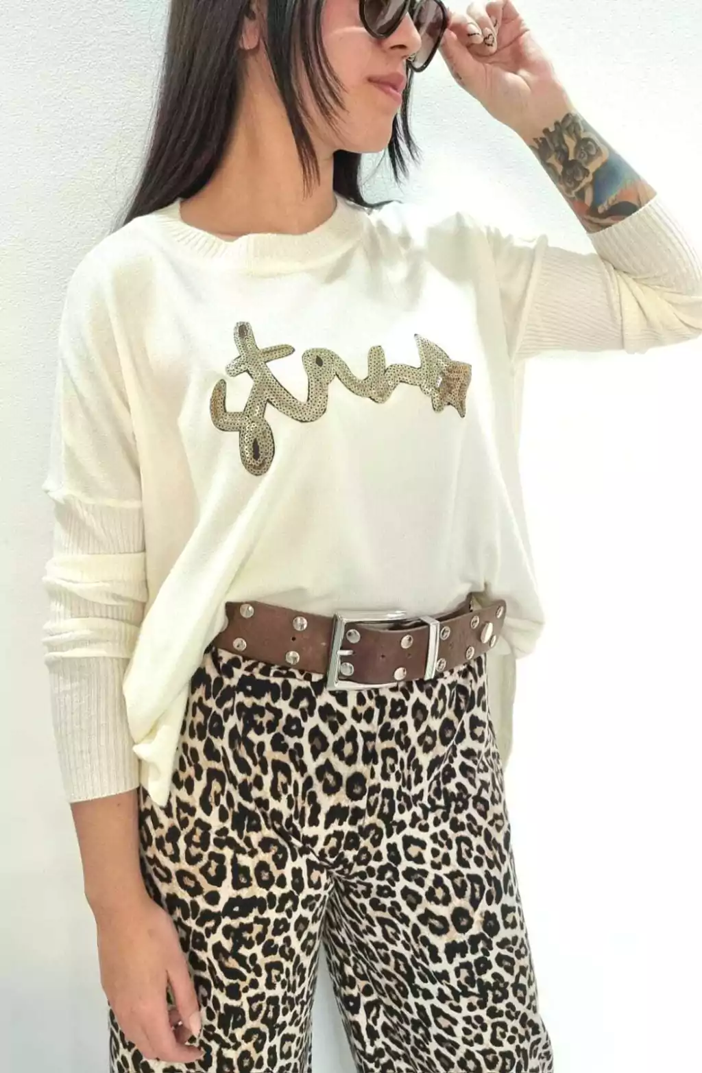 +SWEATER COMFECCIONADO EN BREMER PREMIUM SUPER SUAVE, con aplique bordado de lentejuelas.