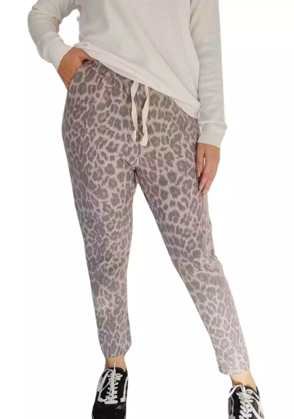 De corte JOGGER, con bolsillos laterales y cordon de vista al frente. Cintura con elastico