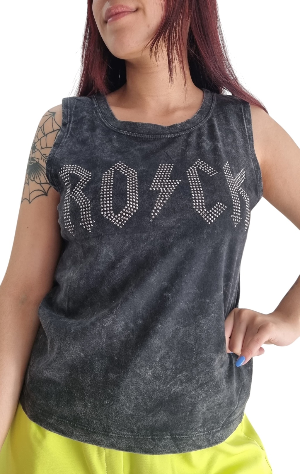 La estampa que posee en el frente, es realizada en pedreria